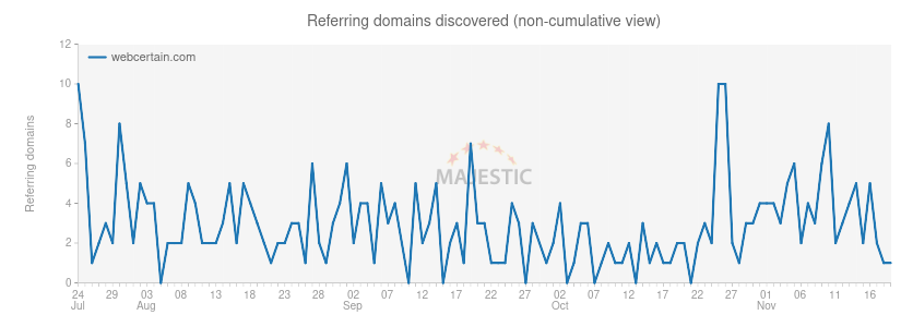 We look for similar links to the same URL on different parts of each Referring Domain. Links that are similar are marked as 'Duplicate'. Links that are unique, or the single best example of a group of duplicate links, are marked as 'Distinct'.