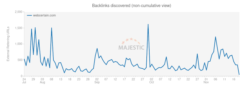 Limited to the top external inbound link for each referring domain. Chart values are logarithmic.